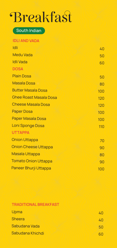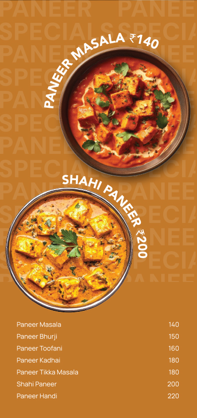 - Over 200+ menus designed for clients across India
